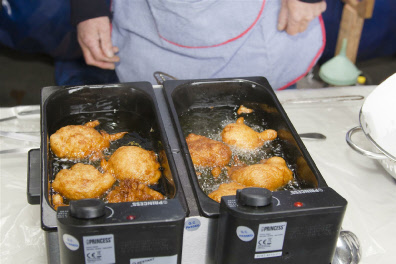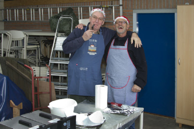 Dolf en Rob zorgden weer voor heerlijke oliebollen (ze hoefden nu zelfs niet te oefenen, hoewel ze toch een beetje angstig naar het rijzen van het deeg keken, volgens fotograaf Frank Blokker). Ook de Glühwein, warme chocolademelk en tulband waren rijkelijk aanwezig. Een goed begin van het nieuwe jaar! Voorzitter Jan wenste ons een gezond en mooi zeiljaar toe en bedankte de oliebollenbakkers.