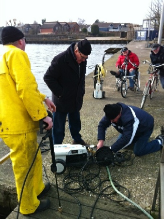 Maar dan blijft er nog genoeg werk over. Het seizoen begint allang vóór het vaarseizoen. Ligt er ijs in de haven dan wordt daar gebruik van gemaakt om de palen te controleren.