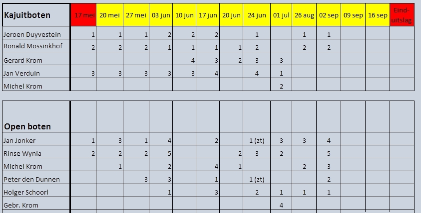 Einduitslag zeilwedstrijden seizoen 2014