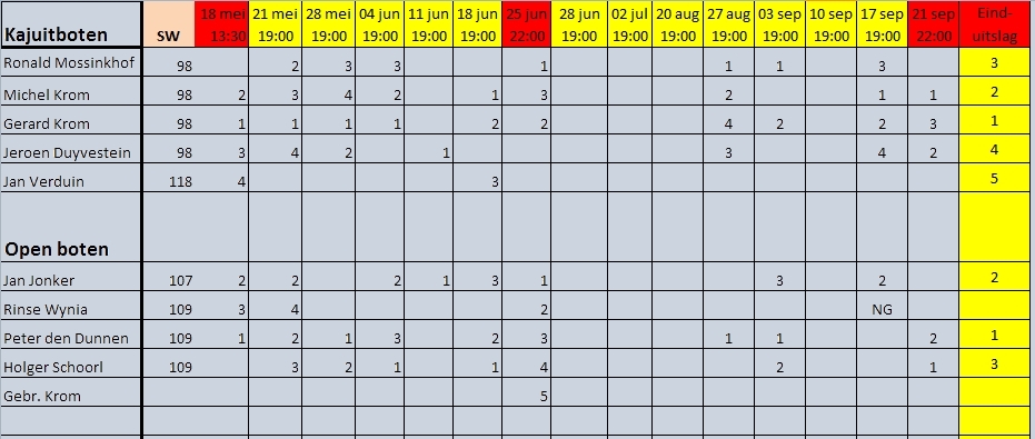 Uitslagen zeilwedstrijden seizoen 2015